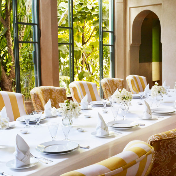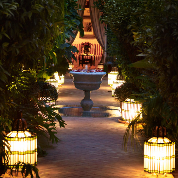 L’Hôtel Marrakech is a privately owned Riad set in the heart of the ‘red city’s’ Medina. L’Hôtel is conveniently close to the vibrant Jemaa El Fna square, the bustling Souk and nearby the 12th century Koutoubia Mosque. This historic 19th century riad, originally the central part of a Caidal palace, comprises six spacious suites surrounding a uniquely wide courtyard garden and swimming pool. This charming retreat combines delicious food, great comfort and service whilst capturing the elegance of hotels of the1930s. Owned by Jasper Conran, the riad combines superb Moroccan craftsmanship with pieces of antique furniture, textiles, lighting and art from his collection, making it feel more like a home than a hotel.
