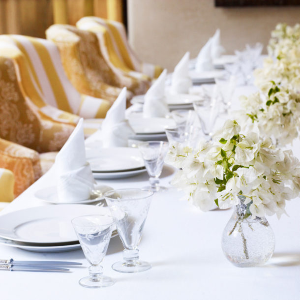 L’Hôtel Marrakech is a warm and inviting setting for parties, family occasions and intimate weddings. We can accommodate 10 to 16 people seated either on the roof terrace under the vine covered pergola or the dining room which opens out onto the luscious courtyard garden.