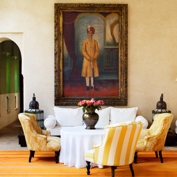 L’Hôtel Marrakech’s dining room is open to non-residents as well as guests of the hotel for lunch and dinner. Tables are set with fine Egyptian cotton. Inviting armchairs and banquettes offer comfort and ease as fresh, vibrant salads and slowly cooked tagines are brought to the table, celebrating the finest seasonal ingredients. On warmer evenings, the dining room opens out on to the garden and on cooler nights a fire is lit.